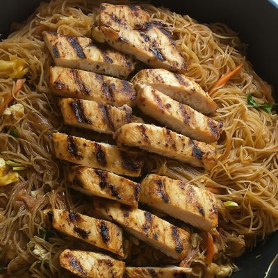 Vibrant Singaporean classic: rice noodles, egg, curry paste, turmeric, vege, & choice of protein.